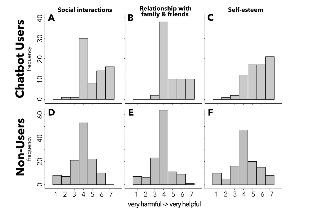 A study by two Princeton researchers, Rose E. Guingrich and Michael Graziano, found that companion chatbot users indicated that these synthetic relationships were beneficial to their social health–their connections with family and friends and their self-esteem– whereas non-users viewed them as harmful. Crucially the findings suggest that AI companionship and human connection don’t have to be zero sum. AI companions could be offering practice, confidence, or something else that translates to better offline connections.